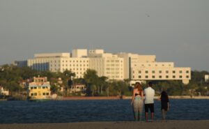 One year after that last hospitalization, we were standing at the beach behind our new condo, looking across the water at the hospital where I had stayed.